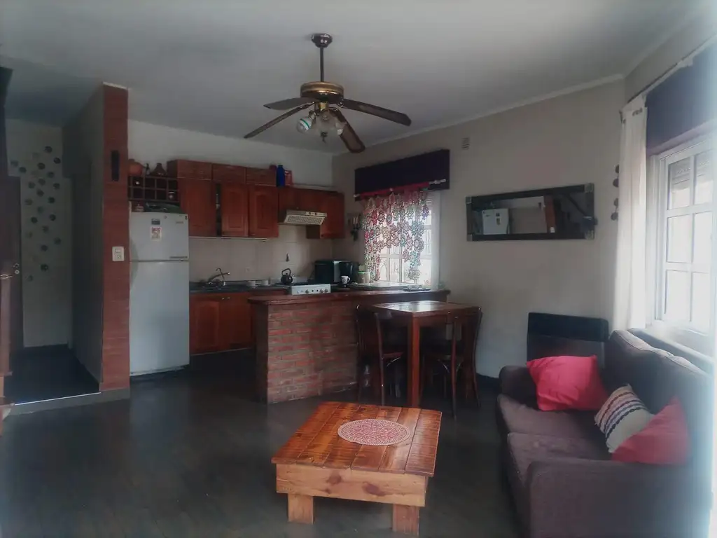 Al ingresar, se accede al living comedor, con una cocina integrada y ventanas al exterior. A la izquierda, se encuentra la escalera a la planta superior. En la planta baja también hay un baño y una habitación muy iluminada.