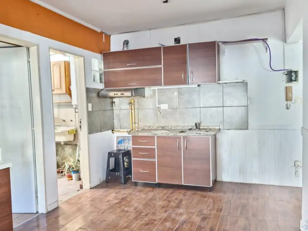 CUENTA CON DOS DORMITORIOS CON PLACARD., COCINA COMEDOR CON SALIDA A UN PEQUEñO PATIO, BAñO COMPLETO, anteriormente contaba con bañera , fue reemplazado por ducha. Se ingresa a la unidad por escalera en primer piso.