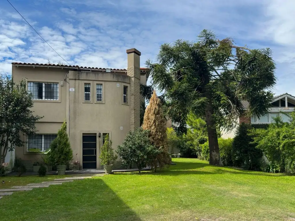 Ubicada en una zona de comercios, se ingresa a traves de porton a un parque que rodea la casa y que tiene lugar de guardado para varios autos descubiertos y uno cubierto.