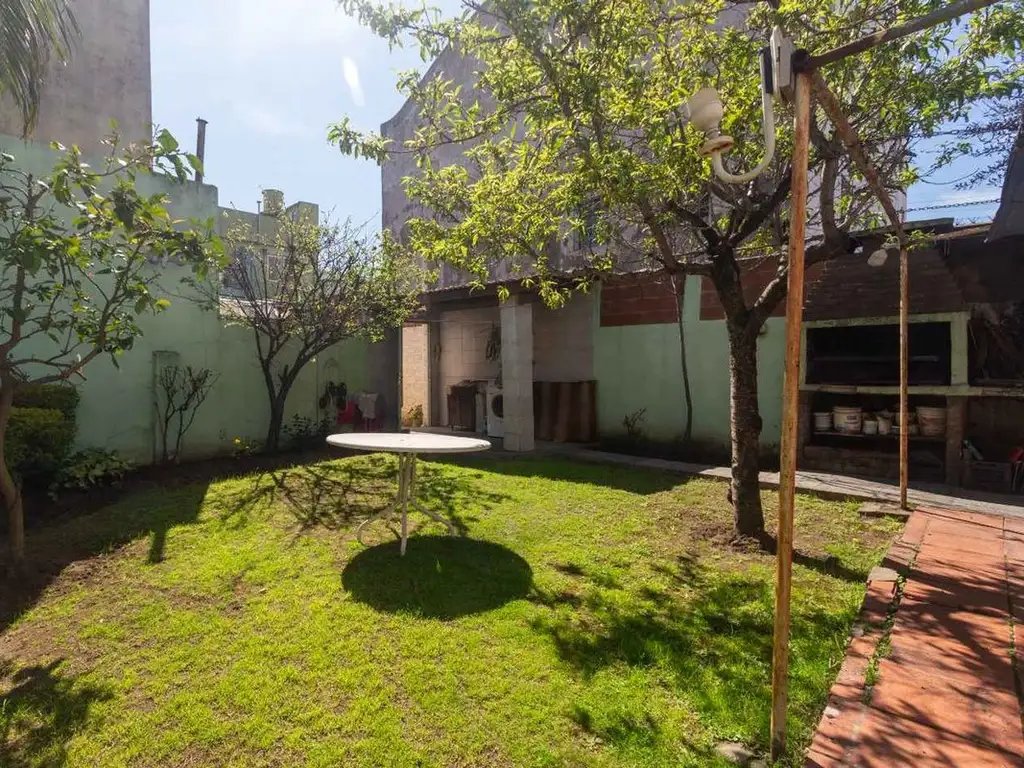 Quincho o espacio adicional en el fondo, con pasto, que no comparte con vecinos y cuya estructura permite la posible construcción de una nueva propiedad.