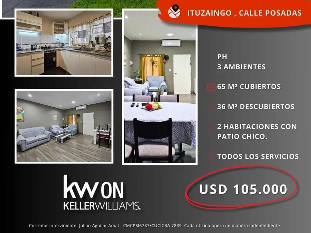 La tasación, intermediación y la conclusión de las operaciones sobre esta propiedad son actividades exclusivas de este corredor matriculado, conforme las previsiones de la ley 20.266, la ley CABA 2340, la ley provincial 10.973 y sus modif. y las normas reglamentarias dictadas por los colegios departamentales. Las oficinas asociadas a la red Keller Williams actúan en forma independiente, brindando servicios a corredores, agentes y al público en general, y su intervención se limita a la prestación de servicios inmobiliarios que no incluyen actos de corretaje ni intermediación inmobiliaria.