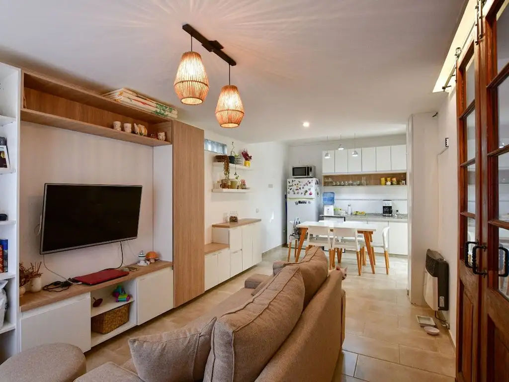 En planta baja, la propiedad cuenta con un amplio y luminoso living-comedor con una cómoda cocina integrada, baño completo, estudio y patio con lavadero.