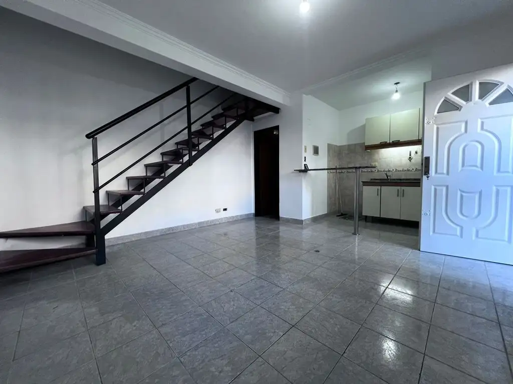 La planta baja consta de un living comedor con cocina integrada y barra desayunadora, un toilette y un lavadero con acceso a un pequeño patio ideal para el secado de ropa. En la segunda planta hay dos habitaciones, una de ellas con placard integrado, y un baño completo. Además, el departamento incluye una cochera.