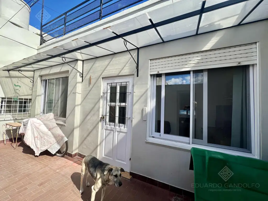 Estar comedor integrado con ventanas en aluminio linea modena hacia el patio; arcada hacia la cocina, ésta totalmente equipada con muebles bajo mesada y alacenas; baño completo y dos dormitorios con placard.