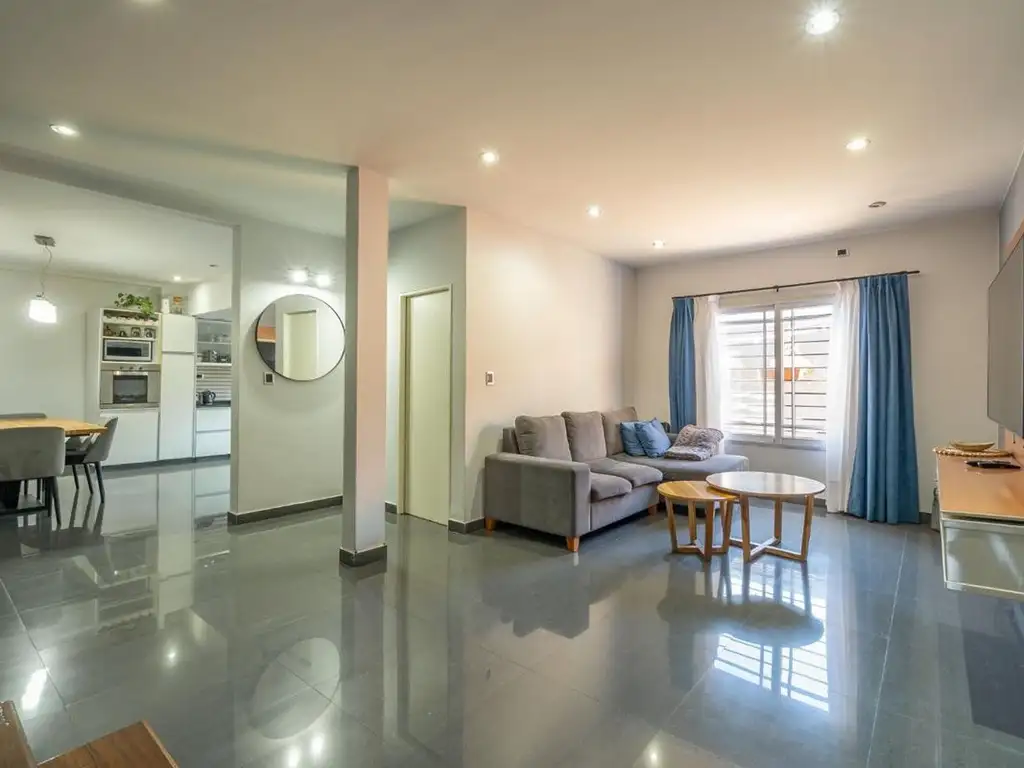 En planta baja, se encuentran living, comedor amplio, cocina con muebles modernos y una isla muy funcional, baño completo.