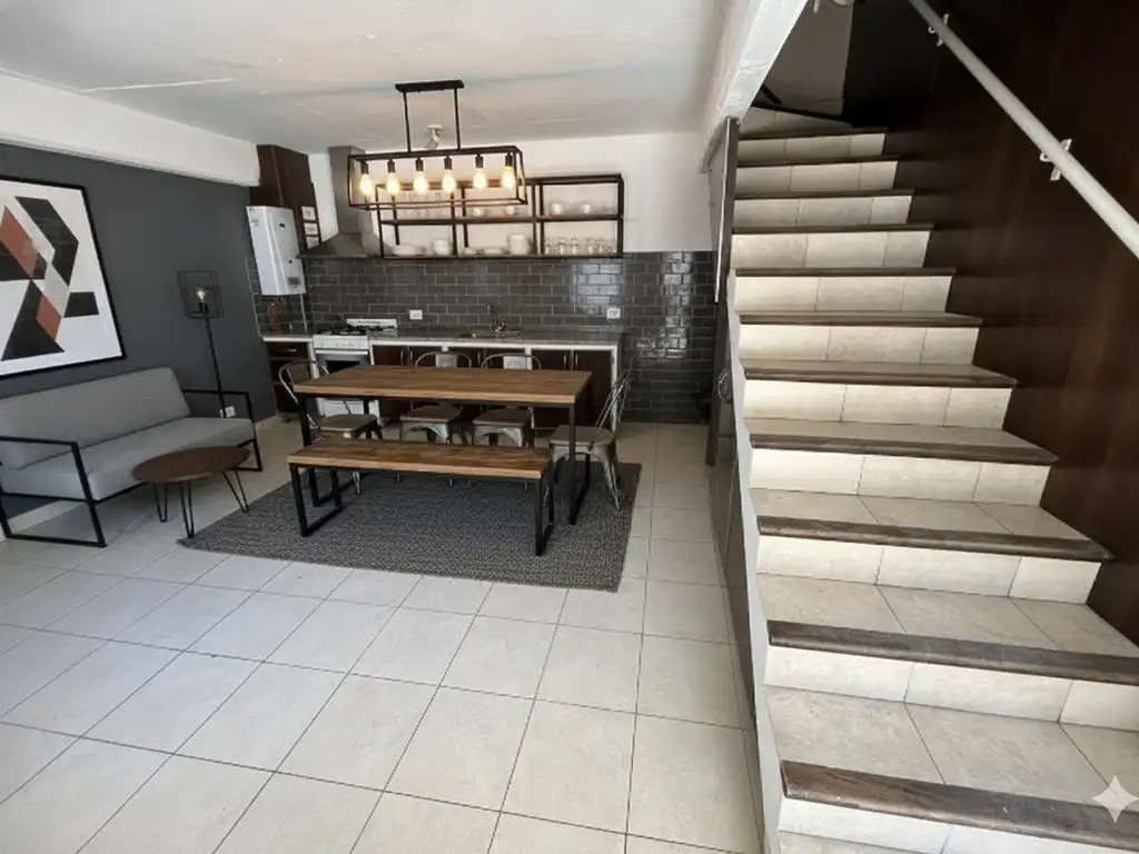 Los dúplex se distinguen por su diseño moderno: Al ingreso nos encontramos con una cocina de concepto abierto, equipada con muebles de melamina a medida, que se integran perfectamente al living-comedor. Este espacio cómodo y funcional es perfecto para disfrutar con familiares y amigos.