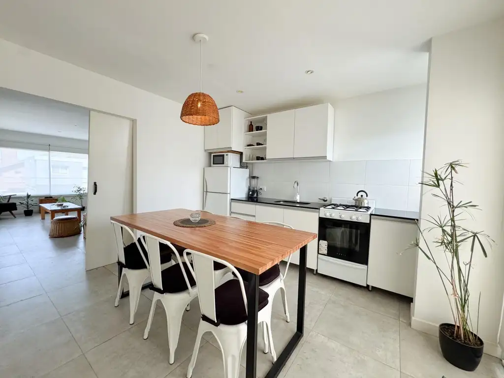 Al ingresar, cocina comedor, amplio living al frente con acceso a la terraza a la calle.