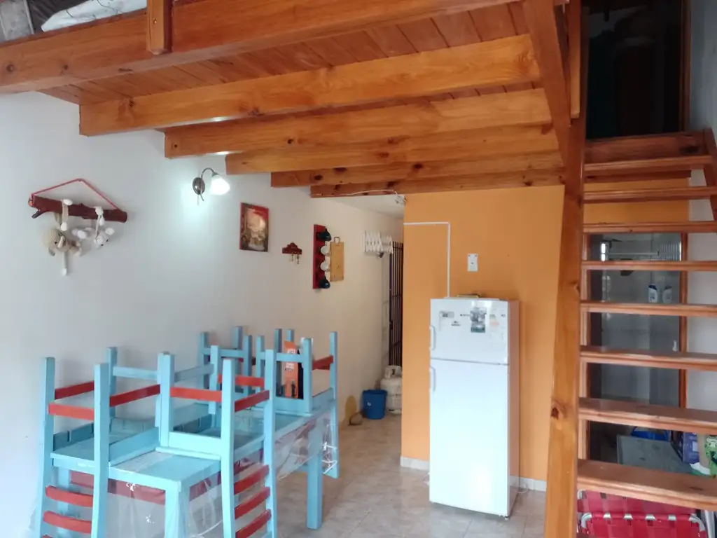 COMODIDADES: Duplex de 3 ambientes al fondo, el cual ingresamos por medio de una puerta de madera ingresando al living/comedor, donde nos encontramos a su izquierda ingresando con una cama de 1P seguido de una mesa de madera color celeste para 6 personas y la heladera con frezzer, siguiendo para la cocina nos encontramos con cocina integrada, con vista al patio interno y equipada con mesada, bajo mesada, bacha de acero inoxidable, cocina (artefacto) y revestido en cerámicos hasta 1,5 mts de altura, la derecha del comedor nos encontramos con un baño completo con las paredes totalmente revestidas de cerámica y cielorraso, al ingresar igualmente nos encontramos con una escalera de madera que nos lleva a la primera habitación tipo altillo con una cama de 1P, seguido de la habitación principal con cama matrimonial y un armario de 2 metros, la misma cuenta con una ventana vista al la playa costera. Desde la cocina por medio de una puerta de madera accedemos al patio cerrado con parrilla y pileta lavadero. Al frente de la propiedad nos encontramos con un espacio descubierto para estacionar un vehículo, La propiedad cuenta con techo de madera con teja francesa, pisos revestidos de ceramicas, paredes con terminaciones en blanco y anaranjado en el interior y, amarillo y blanco por fuera. Cuenta con rejas en todas las aberturas.