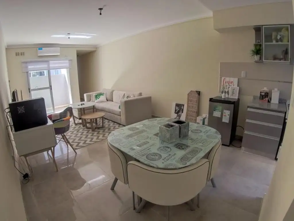 Departamento de dos ambientes al contrafrente, con salida a patio. Living comedor con salida a patio y lavadero, cocina integrada y toilette.
