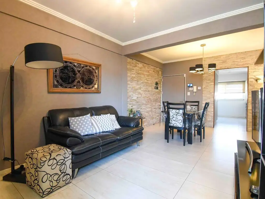 Living comedor amplio y luminoso de 6.23x3.60 (comedor) y 6.23x2.98 (living), ventanal con rejas que da hacia el balcón con cerramiento. Calefacción por radiadores.