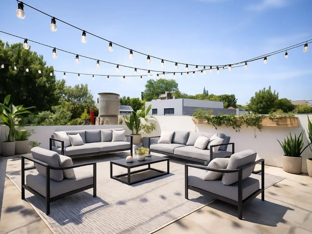 -Terraza propia en primer piso por escalera recta (cómoda), ideal para quincho, solárium, reuniones familiares al aire libre o crear un espacio verde personalizado.