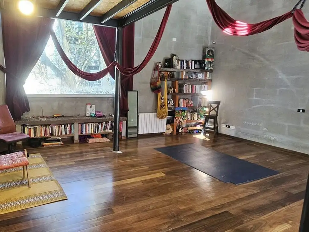 Espacio amplio y con mucho carácter. Conserva aberturas originales con vitrales, techos altos con bovedilla y pisos de parquet en excelente estado. Cuenta con un hall de entrada luminoso, un baño tipo toilette, y dos ambientes que pueden integrarse para generar un gran espacio abierto. Actualmente se utiliza como estudio de música, lo que demuestra su adaptabilidad a usos creativos o profesionales.