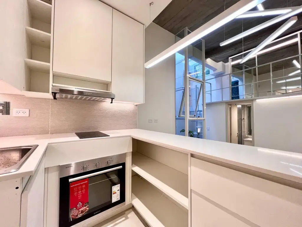 La propiedad se desarrolla en dos niveles y ofrece un living amplio con cocina integrada de diseño moderno, equipada con horno eléctrico. Desde allí se accede a un patio tipo tragaluz que aporta luz natural durante todo el día y jerarquiza el espacio central.