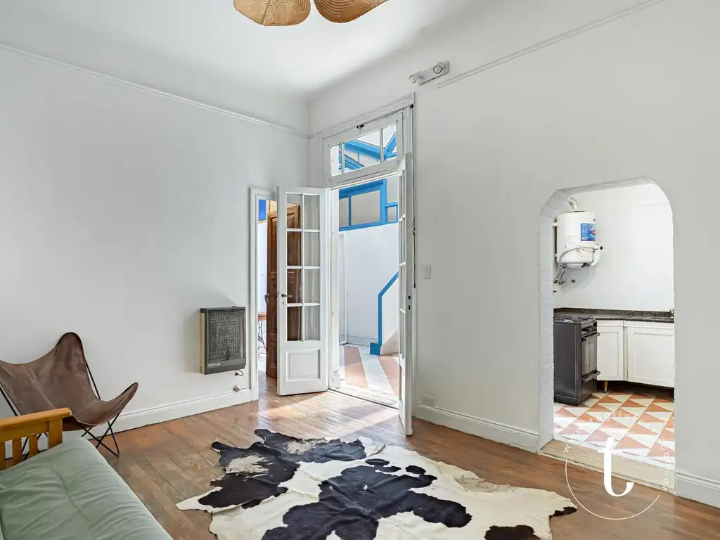 Servicios individuales. La propiedad tiene gas y se pueden reconectar las estufas. Pisos de pinotea en dormitorios y ambiente principal y calcáreos originales en cocina y patio.