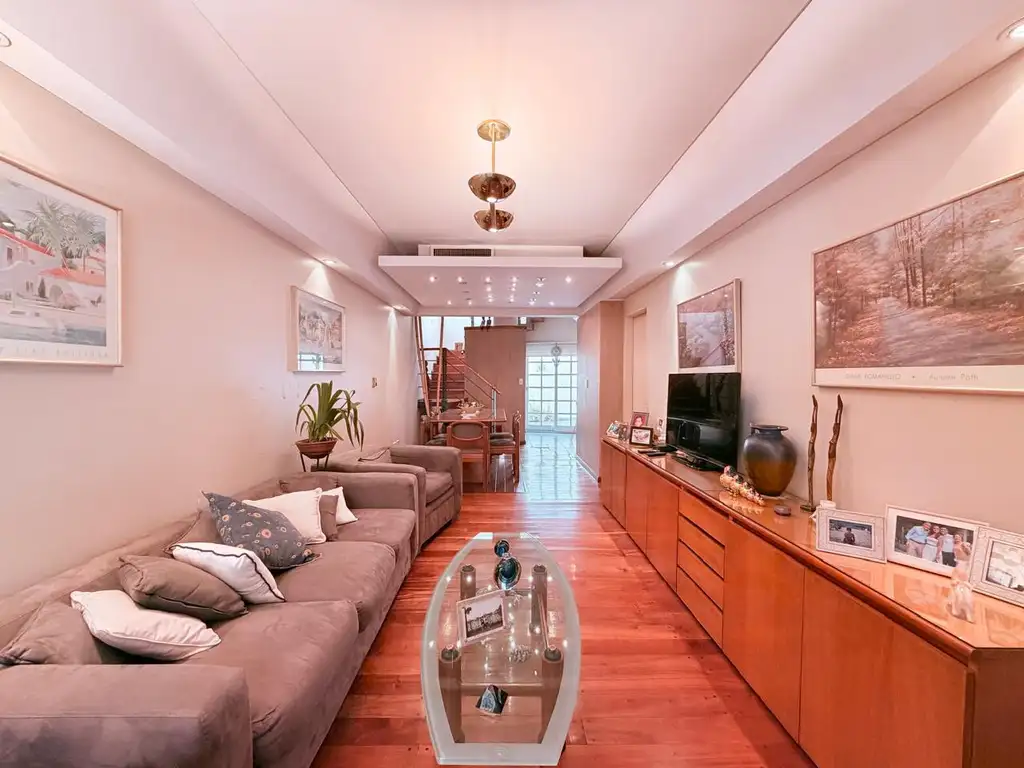 En planta baja: entrada por living, con comedor, cocina con comedor de diario, toilette, patio, espacio de guardado exterior y cochera cubierta con portón. La cochera puede ser un ambiente más! Tiene conexión muy cómoda!