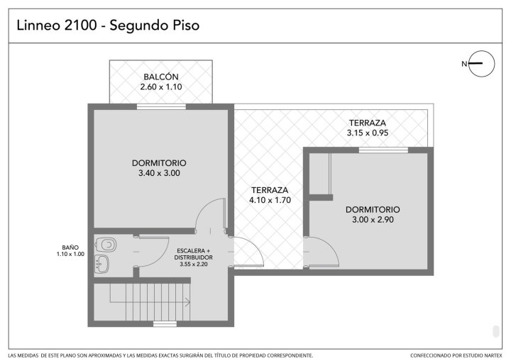 2do piso: dos domitorios, cocina, baño, balcón y terraza.