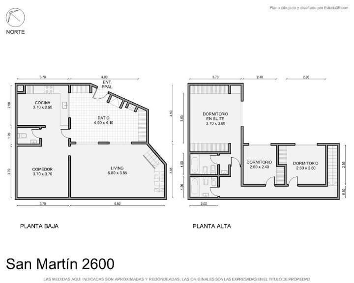 PB: Cocina, toilette y comedor separado del living. Amplio living con salida al patio. 1er piso: Tres dormitorios (1 dormitorio en suite) Baño completo y guardilla (sobre la escalera).