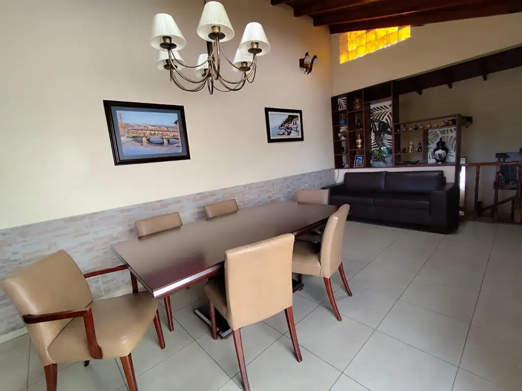 En el siguiente nivel, nos encontramos con un amplio living comedor, con altos techos con ventiluz, toilette, y salida a un amplio balcón aterrazado.