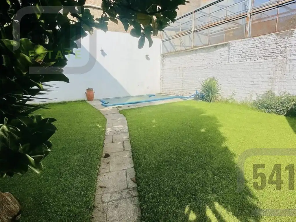 El fondo de la propiedad es un verdadero oasis urbano: más de 90 m2 de césped natural y una pileta que recibe sol pleno durante todo el día. Una casa quinta en plena Capital Federal.