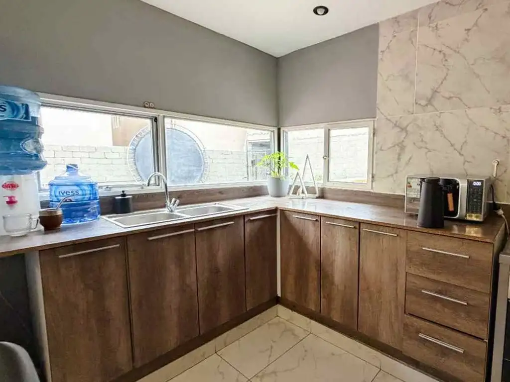 La ampliación posterior, integra cocina y comedor en un ambiente fluido y funcional , y una escalera que conecta con la planta alta, donde se distribuyen dos dormitorios y un segundo baño completo, completando la distribución interior del inmueble. El predio dispone de un patio cómodo con excelente ventilación, potenciando las condiciones de habitabilidad.