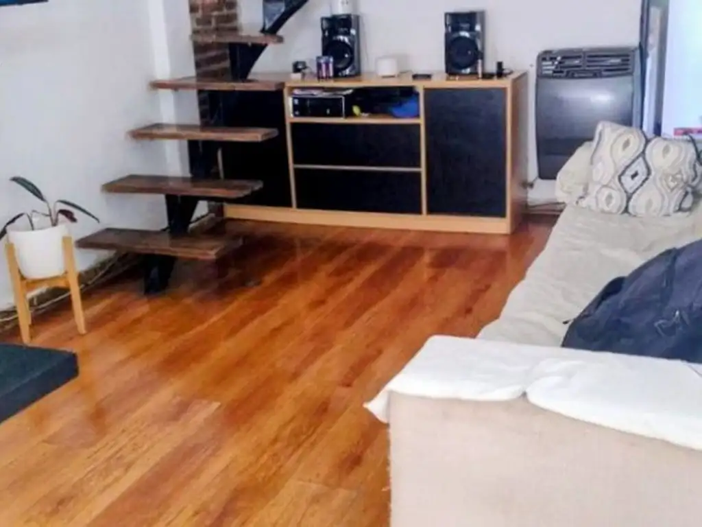 SU INGRESO ES POR UNA PUERTA DE MADERA AL LIVING COMEDOR .UNA COCINA INTEGRADA MÁS UN PEQUEÑO PATIO Y BAÑO