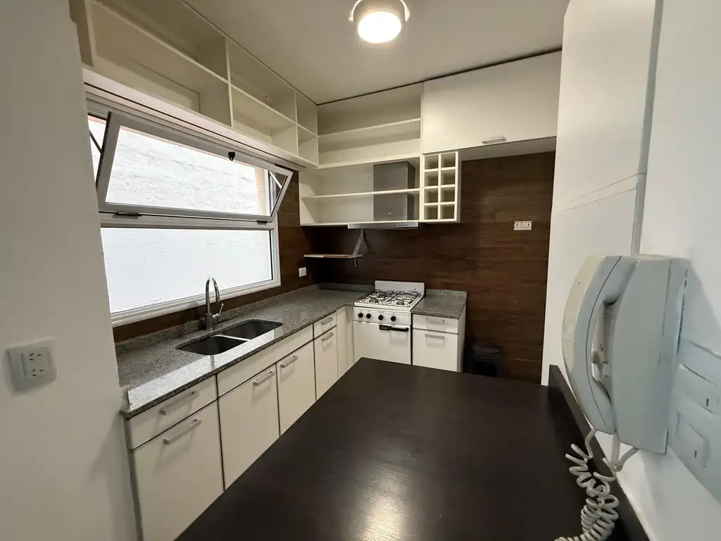 Cocina semi integrada con muebles bajo mesada y alacenas.