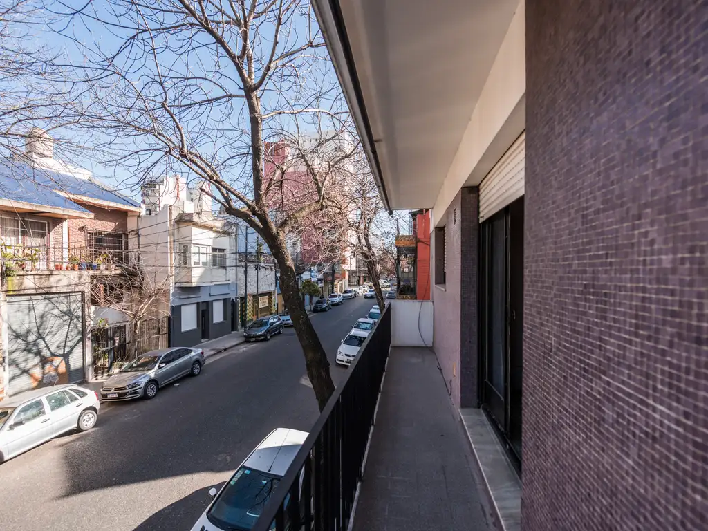 La planta del primer piso, de tres ambientes, se compone de un hall de distribución a través del cual se accede a un amplio living comedor con puerta de vidrio esmerilado de excelente calidad y salida a balcón corrido con vista preciosa a la calle de edificios bajos.