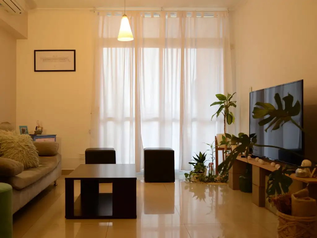 Este departamento se encuentra ubicado al contrafrente del edificio, lo que le brinda una tranquilidad y privacidad extra. Se accede al mismo a través de un amplio living comedor que cuenta con una gran cantidad de luz natural gracias a su acceso al balcón, el cual permite disfrutar de una vista despejada. La cocina se encuentra separada del living comedor y cuenta con gran espacio de guardado con sus completos muebles de bajo mesada y alacenas y posee una práctica barra desayunadora. Además, cuenta con sector de lavadero con espacio para lavarropas y una pequeña bacha.