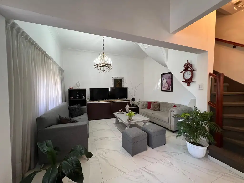 En la planta baja dispone un hall recibidor, living-estar, cocina-comedor semi separada totalmente equipada, patio chico con parrilla, lavadero y baño.