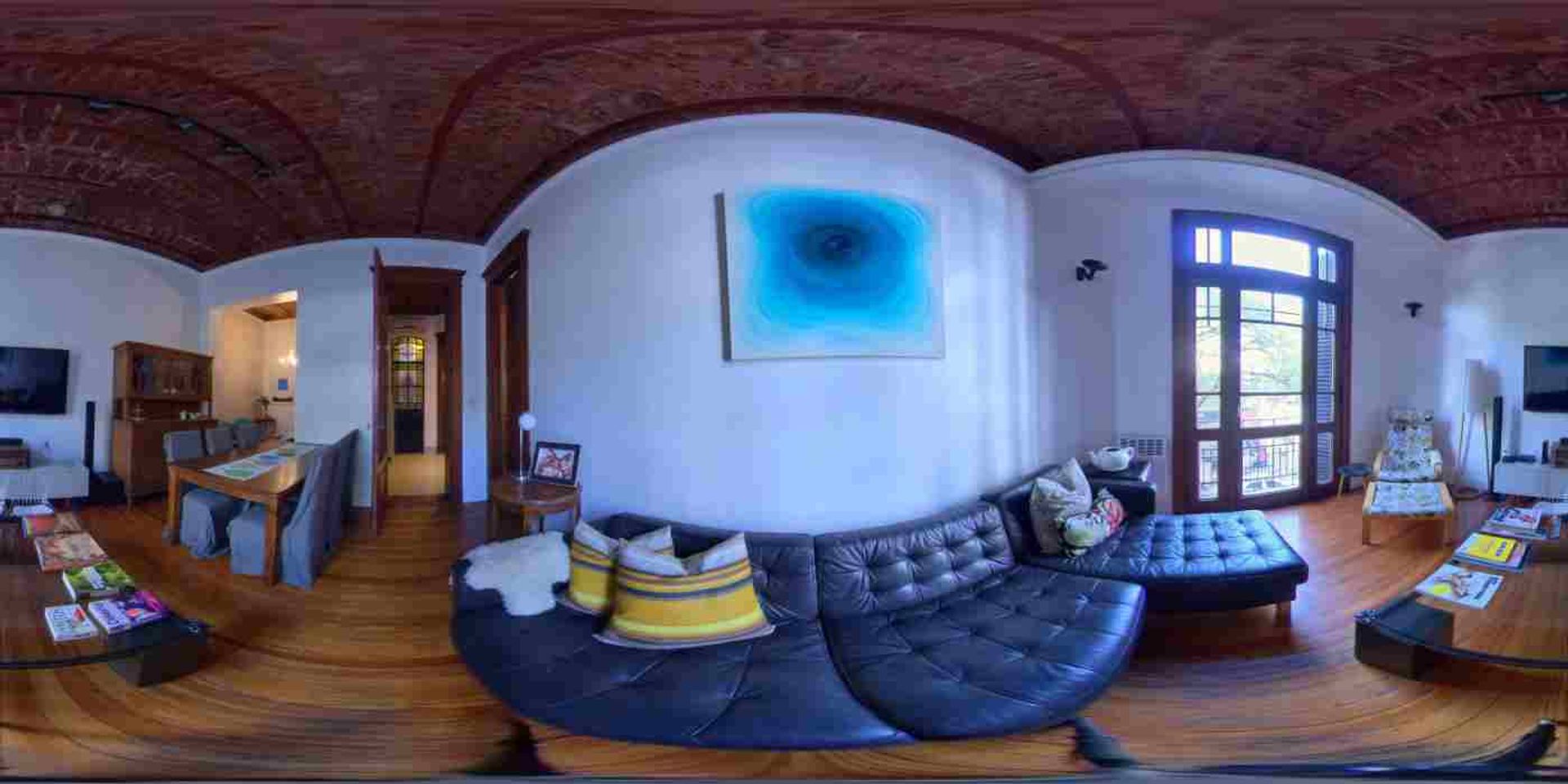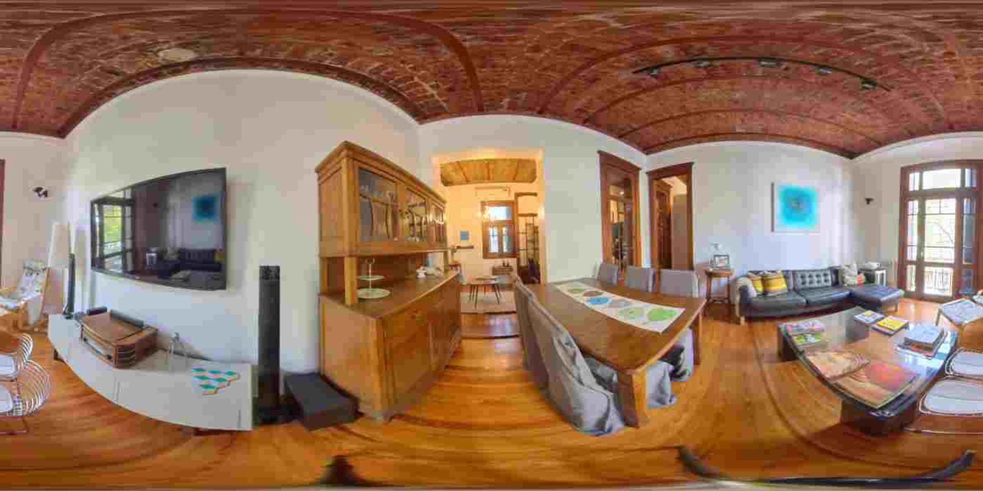 Living Comedor muy amplio con ventanal de altura y triple hoja con balcón francés e instalación de protección de red de balcón Casa Segura. Instalación de tiro balanceado.