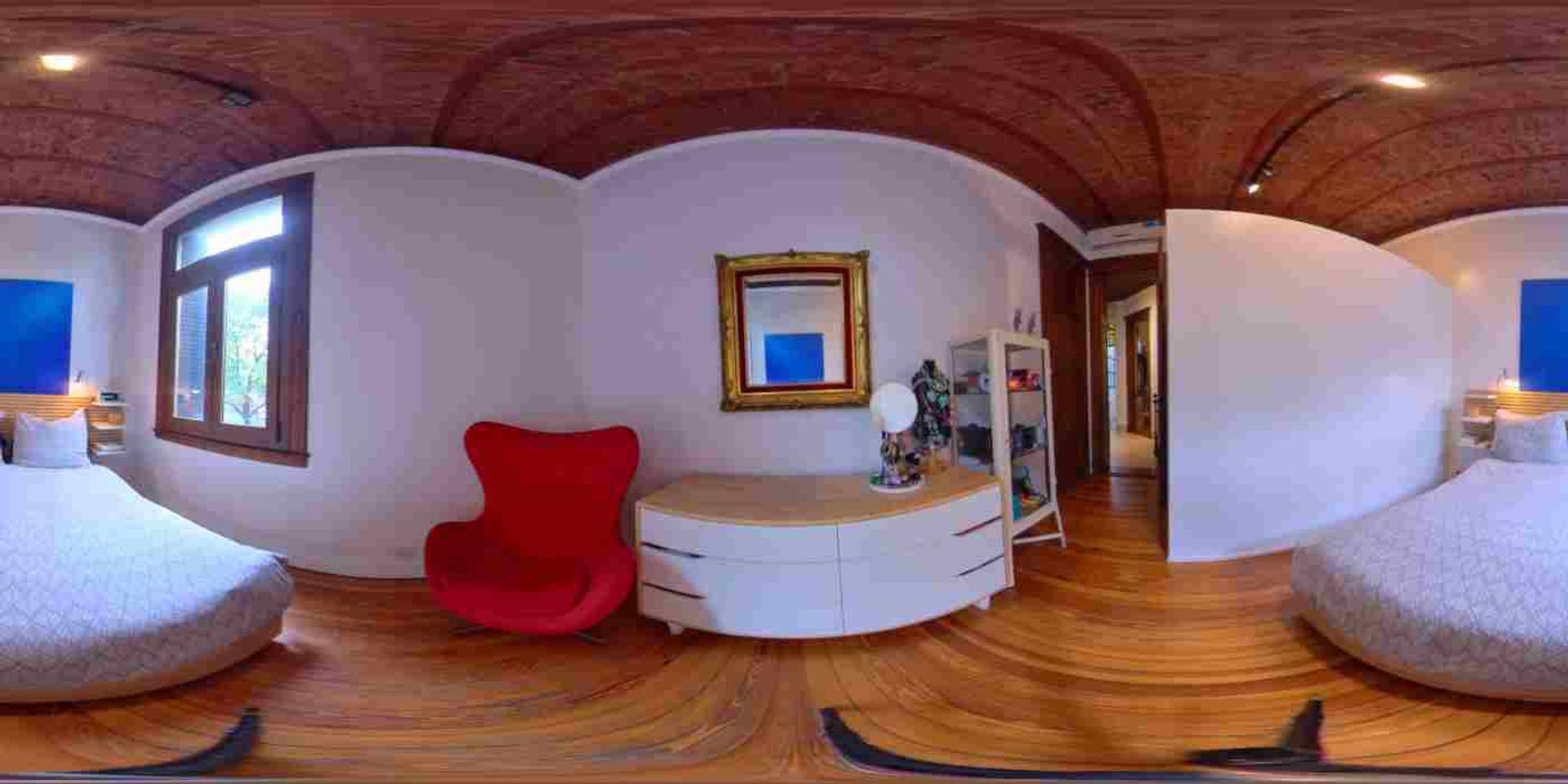 Habitación 1 principal de muy buenas medidas con doble puerta de acceso, vestidor y ventanal doble vidrio basculante donde se mantuvo el diseño y marco original. Instalación de AA y tiro balanceado.