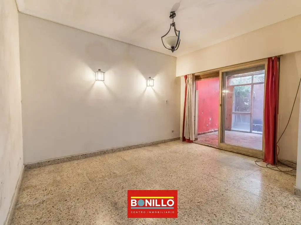 Departamento 2 ambientes en planta baja con patio a refaccionar. Ingreso por hall de 1,40 x 1,20?m que conecta con el living comedor de 5,90 x 4,00?m, amplio y luminoso. Cocina independiente (4,40 x 2,50?m) con buen espacio de guardado y lavadero separado (2,10 x 1,50?m), con salida a un patio trasero de 4,50 x 1,20?m.