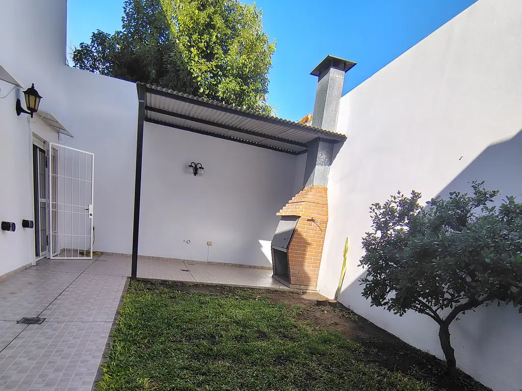 FONDO LIBRE CON SU PRIMER TRAMO EN BALDOSAS Y LUEGO PARQUIZADO Y UN SECTOR AMPLIO CON PISOS CERAMICOS TECHADO Y CON PARRILLA PARA ASADOS Y REUNIONES FAMILIARES.