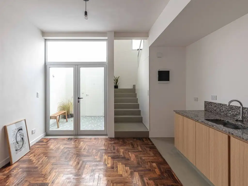 Ubicado en planta baja. Cuenta con 2 ambientes amplios, un baño completo y un toilette. Además tiene muy buena luz natural y un patio.