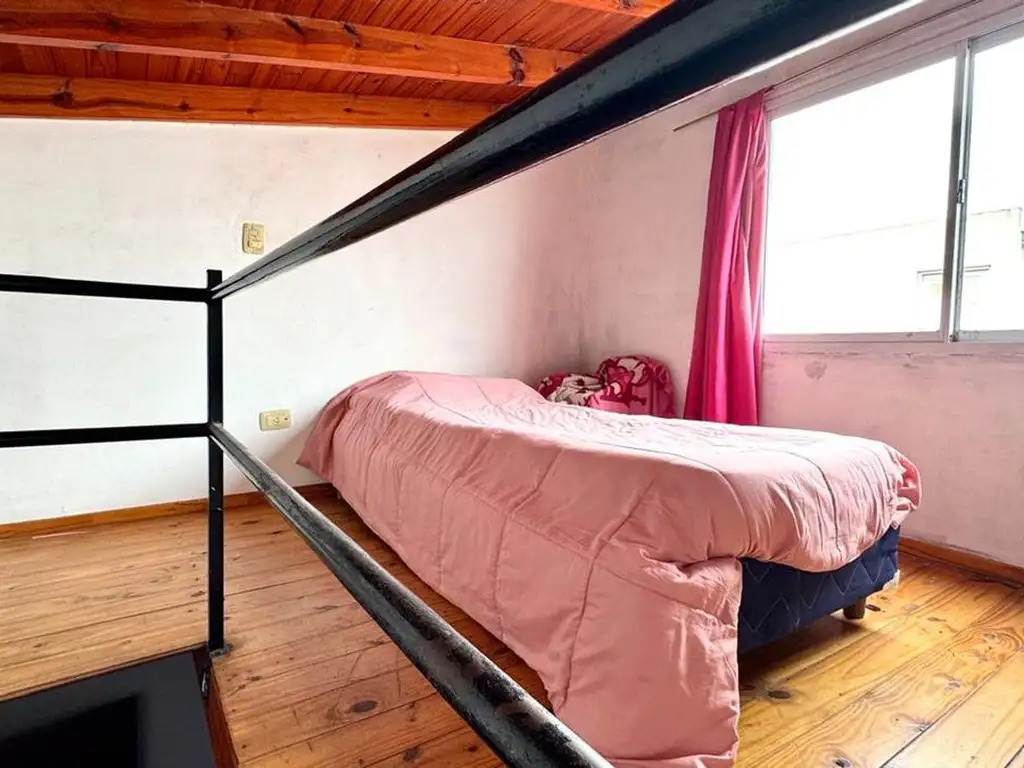 Cuenta con un baño completo y una habitación principal. Desde allí, una escalera de hierro conduce a un entrepiso que puede utilizarse como segundo dormitorio o espacio de trabajo.