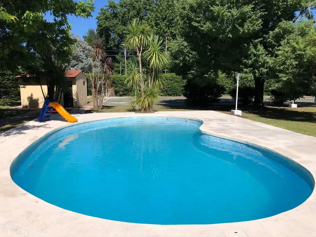 Quinco con parrilla, pileta, mesada, mesa principal y asientos para treinta personas