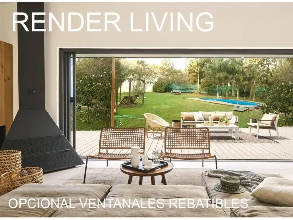 - LIVING CON HOGAR A LEÑA CON PROYECCION A GALERIA CON DECK Y PISCINA