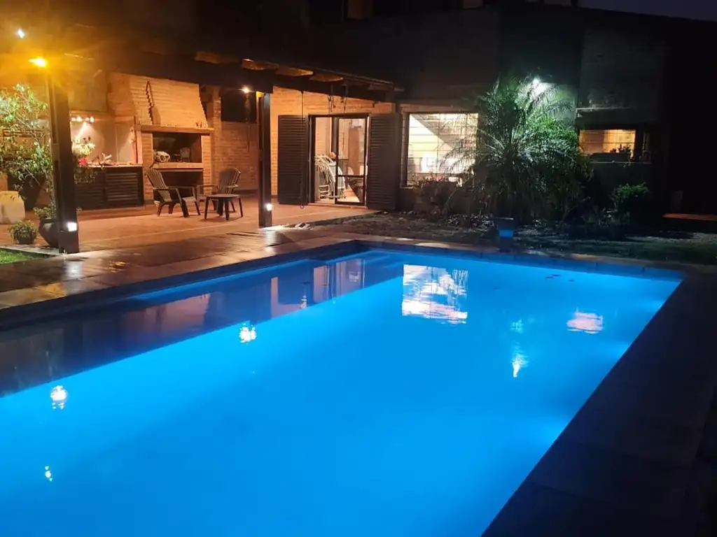 patio verde, galeria con asador totalmente equipado, pileta. cochera para 2 autos digna de ver.