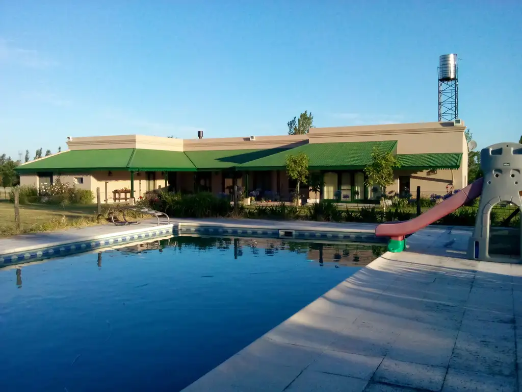 EXTERIOR: Amplia Galería, Quincho cerrado con parrilla, hogar y baño. Pileta revestida con venecitas, solarium, vestuarios, gimnasio. Galpon con monturero, matera. Molino, bebedero para animales. Parque con riego por aspersión.