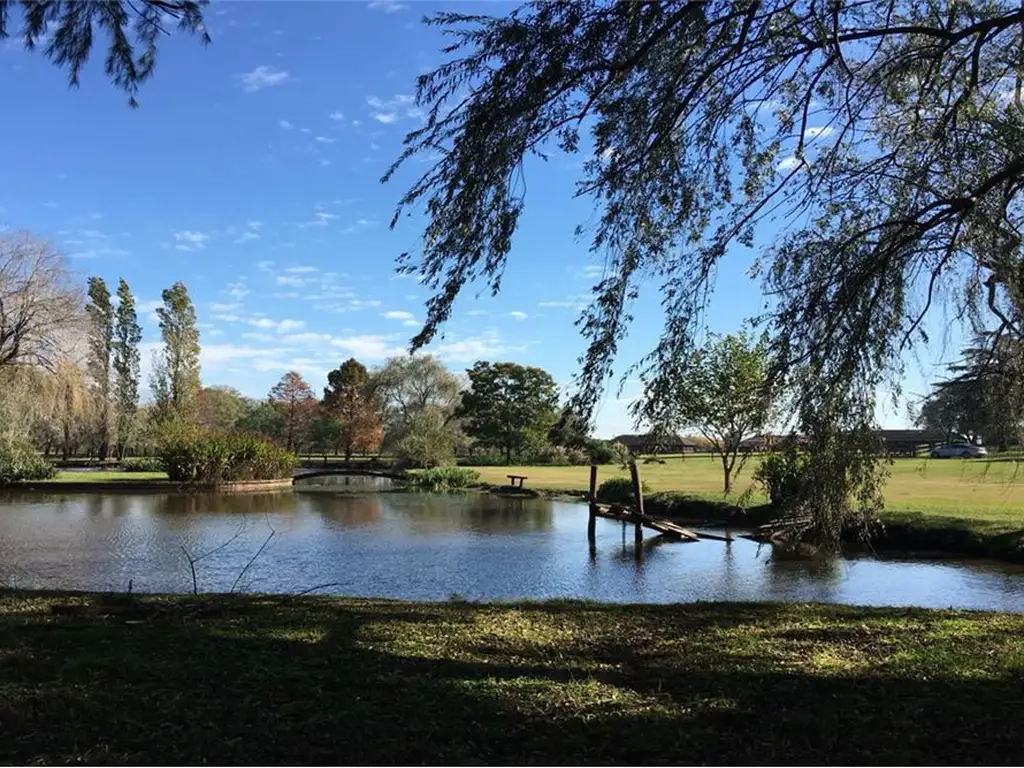 La propiedad está ubicada en la ciudad de Manzanares, en la provincia de Buenos Aires, a cinco minutos de la carretera Panamericana Pilar (RN8), y a solo 70 km del centro de Buenos Aires. Las tierras aledañas se han ido convertido gradualmente en barrios residenciales. Las 17 hectáreas han sido arboladas con más de seiscientas especies de árboles y arbustos. Una laguna, un arroyo y una cascada son características que agregan un encanto especial a la granja, además de proporcionar un entorno excelente para actividades al aire libre y de relajación. La casa principal de 280 m2, es una típica casa de campo en rosa colonial que combina estilos con acabados y columnas con cierto aire toscano. Los pisos están hechos de ladrillos rústicos y tiras de cemento. Todas las habitaciones muestran detalles de zócalos de madera, marcos y molduras. La misma está construida en dos alas unidas por una galería de vidrio que funciona como jardín de invierno y área de entretenimiento informal donde se encuentra la parrilla.Desde allí hay una vista completa de la piscina de 12 x 7 metros y el jacuzzi. En una de las alas se encuentran dos dormitorios, dos baños, el dormitorio principal en suite y una amplia sala de estar. La cocina y el comedor están al otro lado de la galería vidriada que también contiene un baño. La casa yace sobre la zona más alta del campo, disfrutando de diversas perspectivas de vistas hacia el paisaje.Tiene lavadero y La granja está totalmente equipada para la práctica de polo; cuenta con 15 caballerizas de quebracho, sala de equipamiento para caballos (monturero), corrales, galpón para fardos, silo, molino de viento y un huerto. También hay dos casitas y juegos de madera de alta calidad y un gimnasio al aire libre.Cuenta con un escritorio ,despensa y baulera independiente. La casa de huéspedes completa con cocina y baño está situada cerca de la casa principal, así también el cuarto de servicio, lavadero con patio y un garaje para dos vehículos. El campo cuenta con una despensa, una huerta con riego por aspersion,garita de seguridad. En total cuenta con 3 dormitorios, 7 baños y dos cocheras.