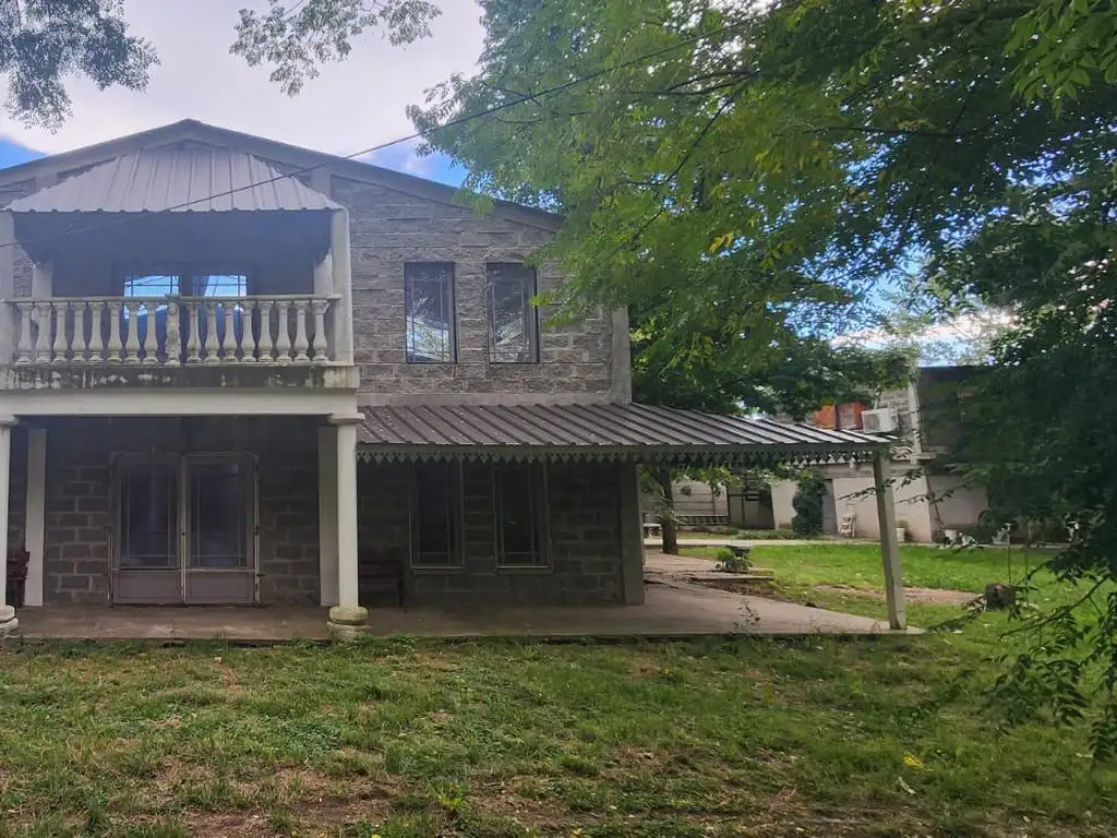 Salón para eventos con entre piso y baños. Amplio parque arbolado. Sector de parrilla, cocina, baño, oficina y en planta alta departamento.