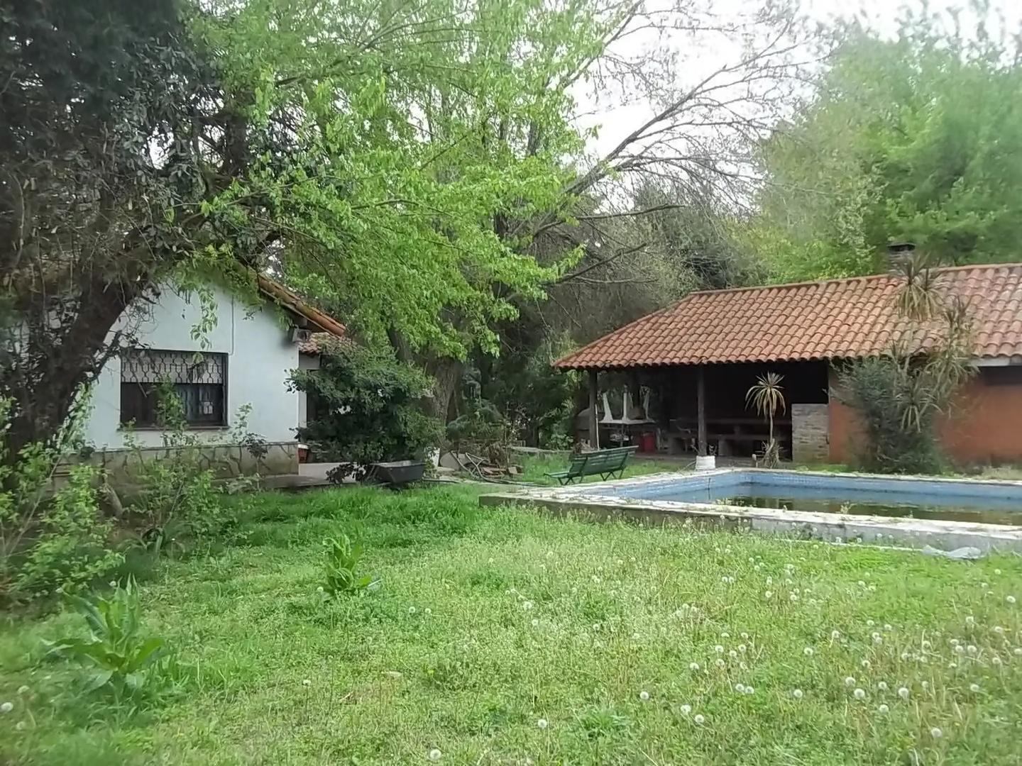Casaquinta estilo mediterráneo en dos plantas, zona residencial, barrio los jazmines, 400m2 construidos sobre una superficie de terreno de 2800 m2 con frondosa arboleda, 4 dormitorios (2 en suite) todos con balcón, 3 baños, living comedor de 150 m2 con hogar a leña, cocina comedor 25 m2 con parrilla interior, hall, escritorio, vestuario 21 m2 en planta alta con placares y espejos, 2 cocheras cubiertas, techo losa, muy luminosa, importante piscina 18x8x4, quincho con parrilla, dependencia de servicio, lavadero cubierto, 2 aires acondicionado, alarma, 2 calefactores tiro balanceado.- Dúplex de 3 ambientes sobre las dos cocheras 2 dormitorios con placares, baño completo, balcón.-