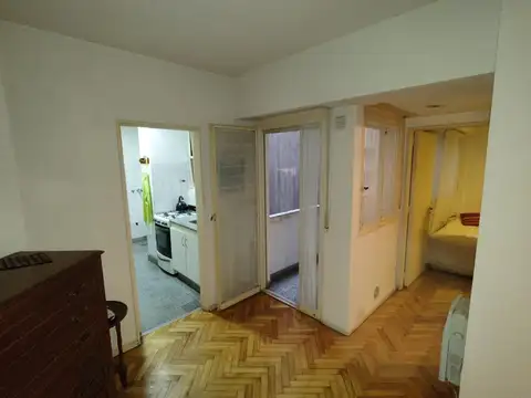 Total de ambientes 2 ambientes, buen living comedor (4,20m x 3,60m) + (2,10m x 1,30m) y dormitorio (3,60m x 2,95m), ambos con pisos de parquet en buen estado, 1 baño completo, balcón exterior (3,60m x1,10m) y cocina separada de living (2,10m x 3,15m con espacio para lavarropas incorporado y buena ventilación exterior, cocina con horno y calefón, calefacción por estufa, hall de distribución (1,20m x 1m).