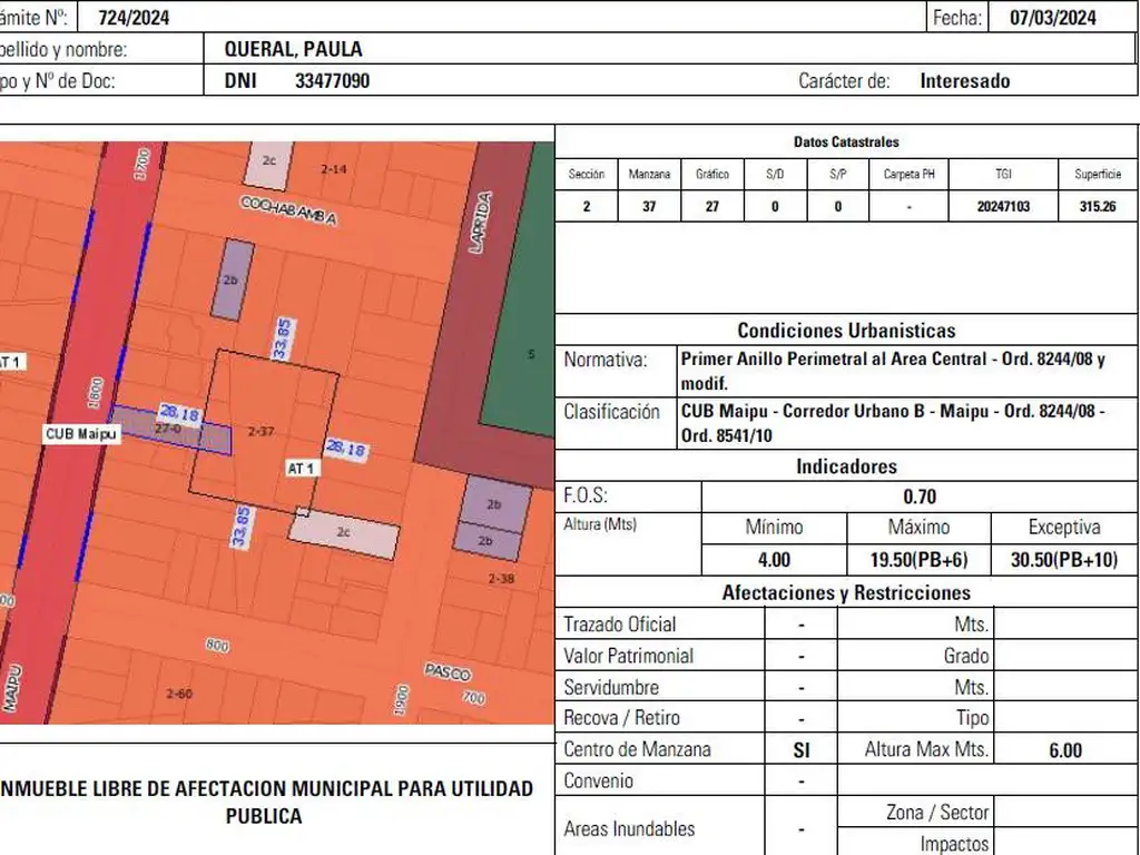 Catastral: Sección: 2 Manzana: 37 Gráfico:27