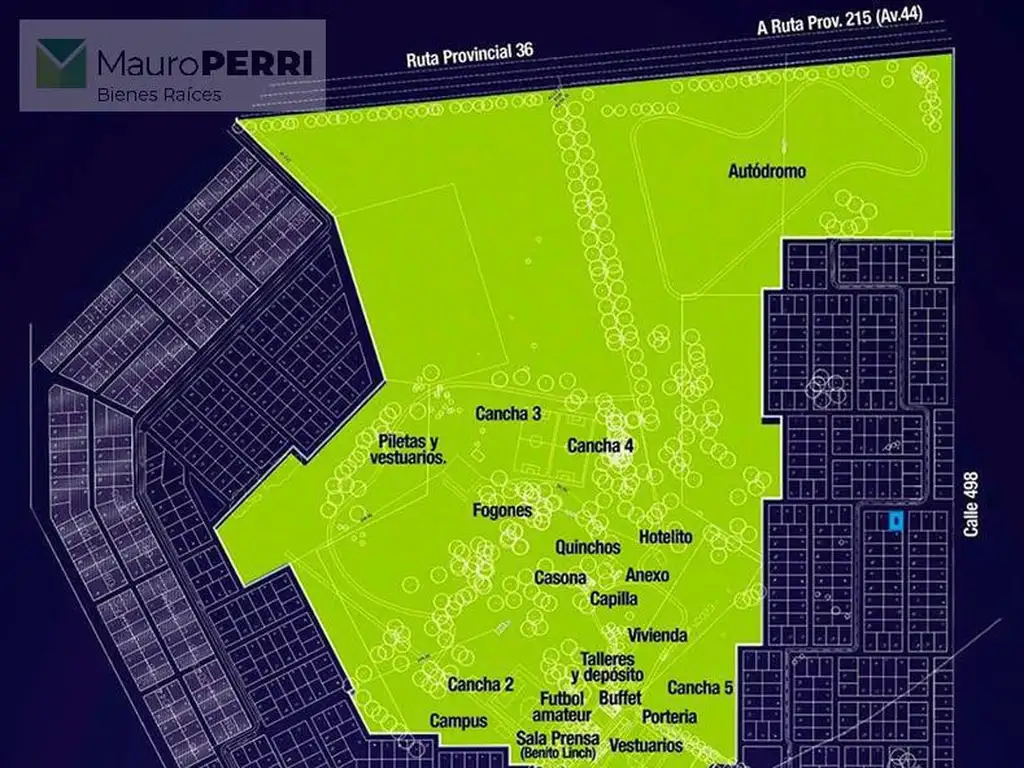 Muy bien ubicado, comprendido entre la ruta 36, calle 498, calle 202, diagonal 197 y calle 476; con fácil accesibilidad a La Plata (centro), City Bell y Capital Federal, alejado del tráfico y el ruido de la ciudad; un lugar para disfrutar en familia con grandes espacios recreativos y deportivos.