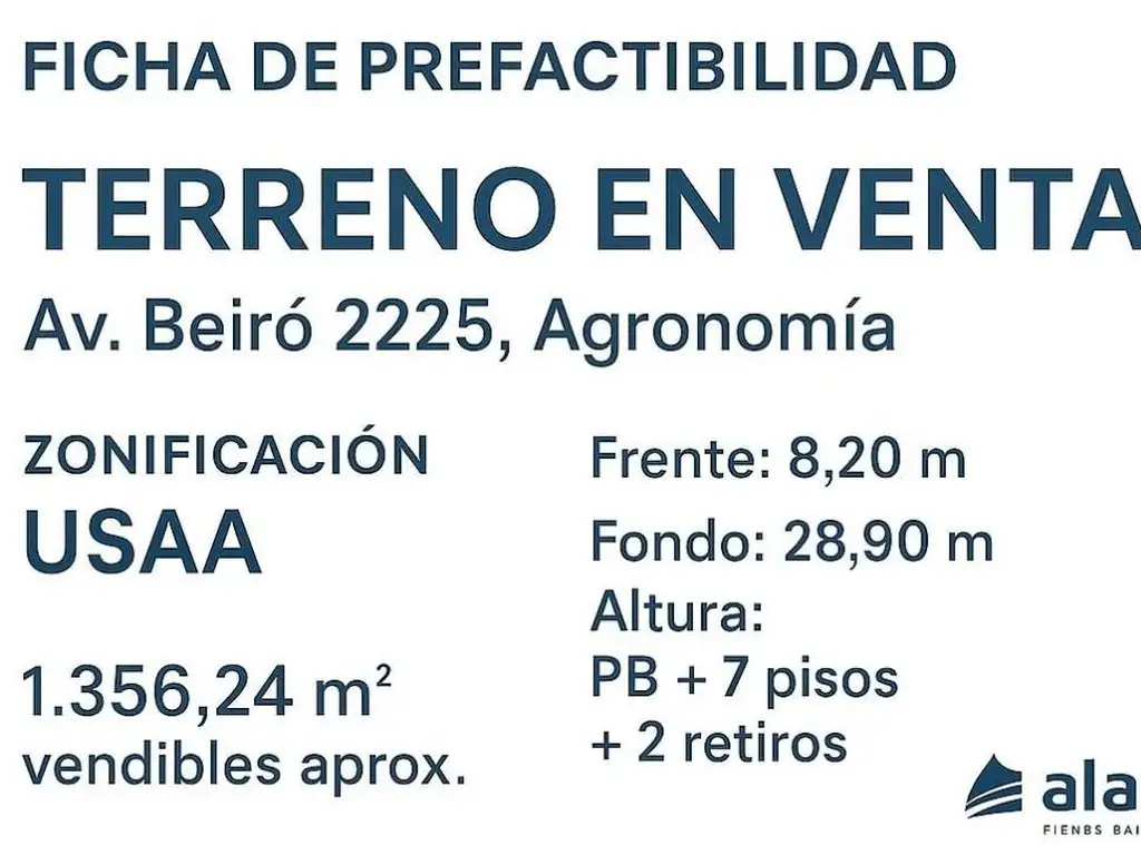 Venta Terreno sobre Av. c/ vista abierta 1353 m2 vendibles_Agronomía