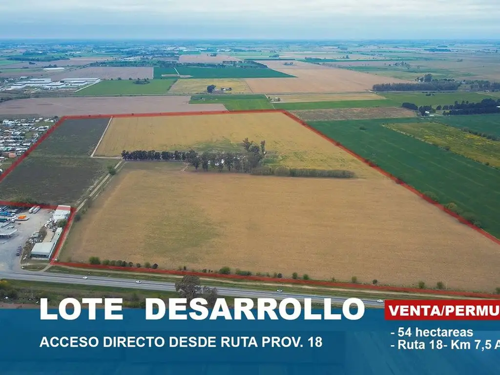 El terreno se encuentra ubicado sobre la Ruta 18 en el kilómetro 7,5, en la localidad de Alvear, provincia de Santa Fe. Cuenta con una superficie total de 54 hectáreas y acceso directo desde la ruta provincial.