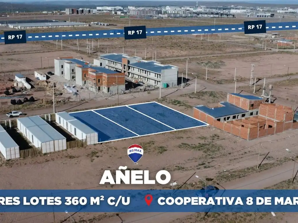 El lote está ubicado en Cooperativa “8 de marzo” en la Ciudad de Añelo, en la manzana 272. Lindero a \"Asomupat\". Entre el área urbana, la ruta y el parque industrial, lo que lo convierte en un punto estratégico para trabajadores del centro de la ciudad y de los yacimientos petroleros. Con acceso directo a las rutas 17 y 7, principales vías de conexión con Neuquén Capital y las áreas de explotación. La ubicación facilita el desplazamiento laboral y acceso a servicios como bancos, supermercados, locales gastronómicos y estaciones de servicio.