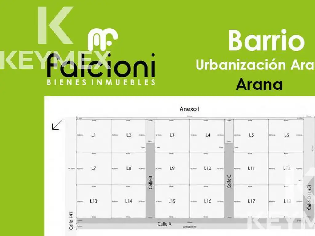 Ubicado en el Fideicomiso "Urbanización Arana" se encuentra este lote de 43 x 46 metros con una superficie total aproximada de 1978m2.