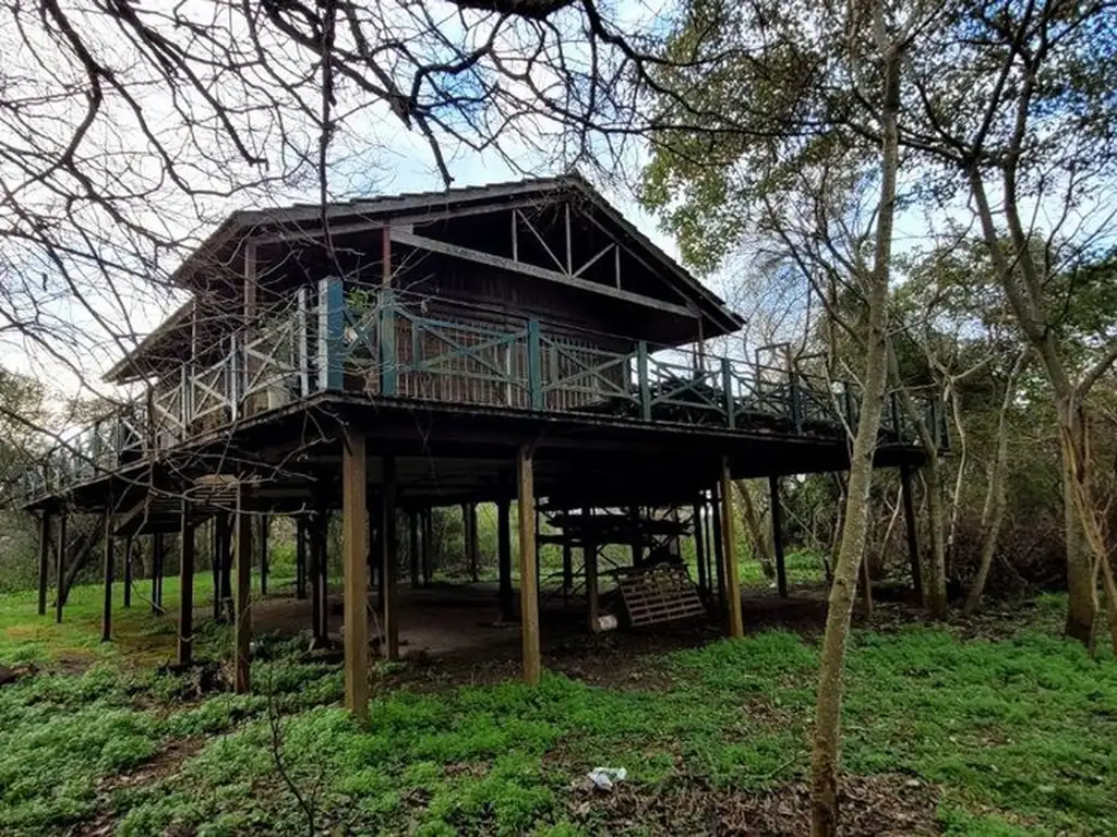 La propiedad incluye una porción de la isla frente a la costa, ofreciendo un acceso privilegiado a las aguas del río. Sobre el terreno, se alza una casa de 69 m² construida sobre pilotes, esperando ser restaurada para brindar un refugio único en medio de este paisaje idílico.